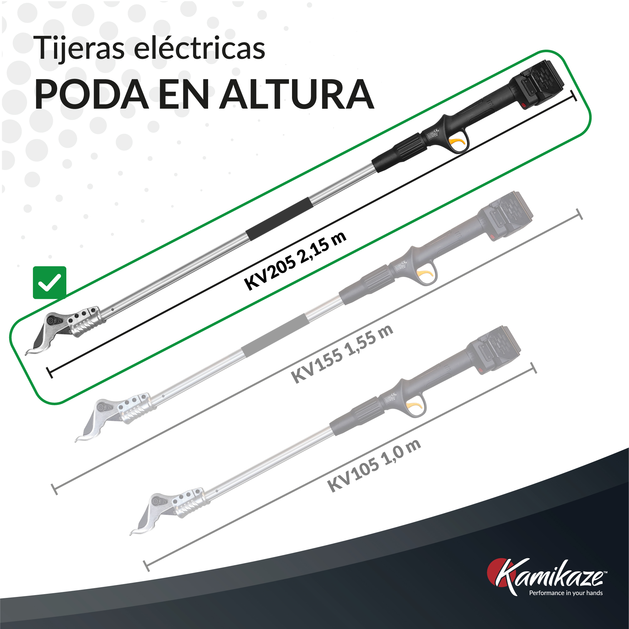 Diseño patentado: Pértiga eléctrica de poda en altura con diseño patentado y 3 años de garantía, ideal para uso profesional en trabajos de poda de alta exigencia.